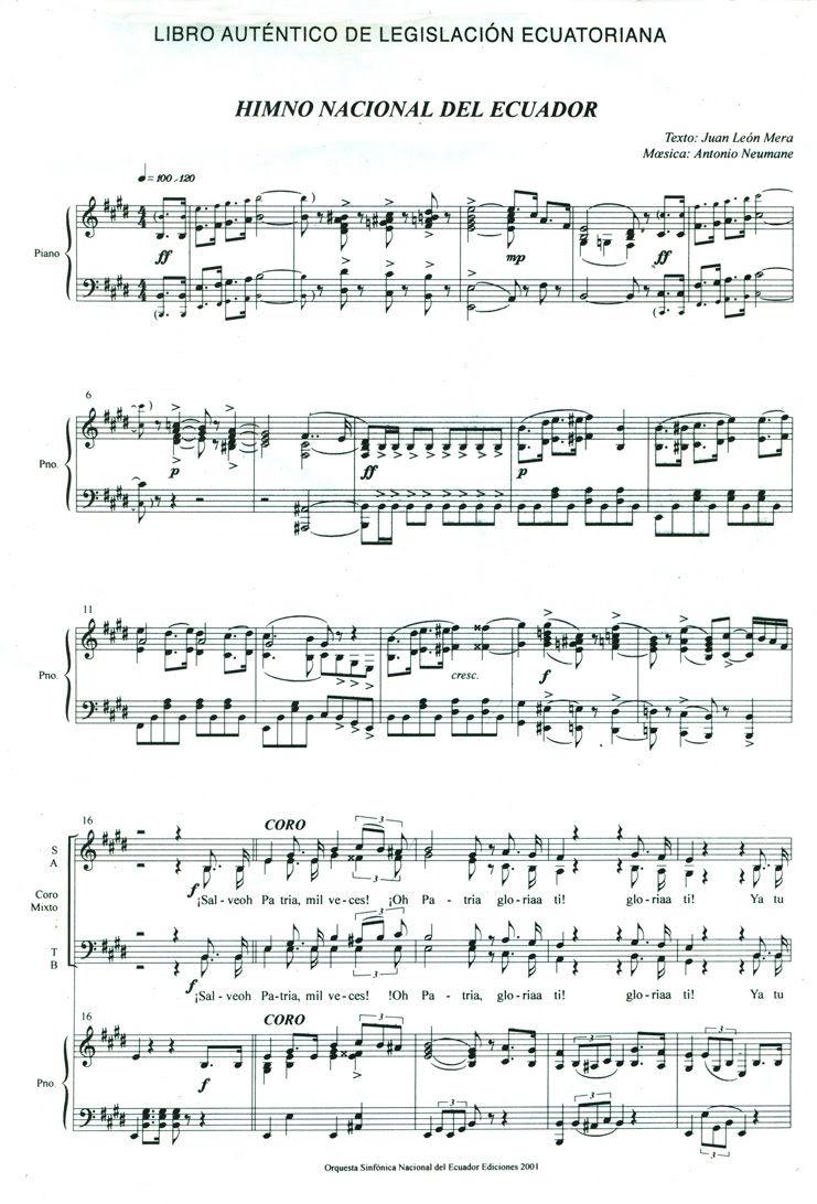 3. Letra del Himno Nacional del Ecuador (transcripción)